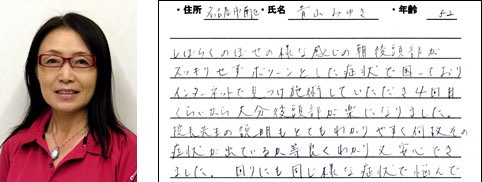 ・住所 名古屋市南区 ・氏名 青山 みゆき 様 ・年齢 52歳