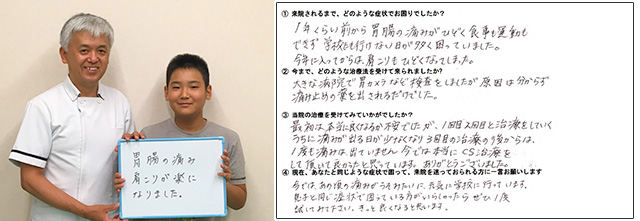 1年くらい前から胃腸の痛みがひどく食事も運動もできず学校にも行けない日が多く困っていました。